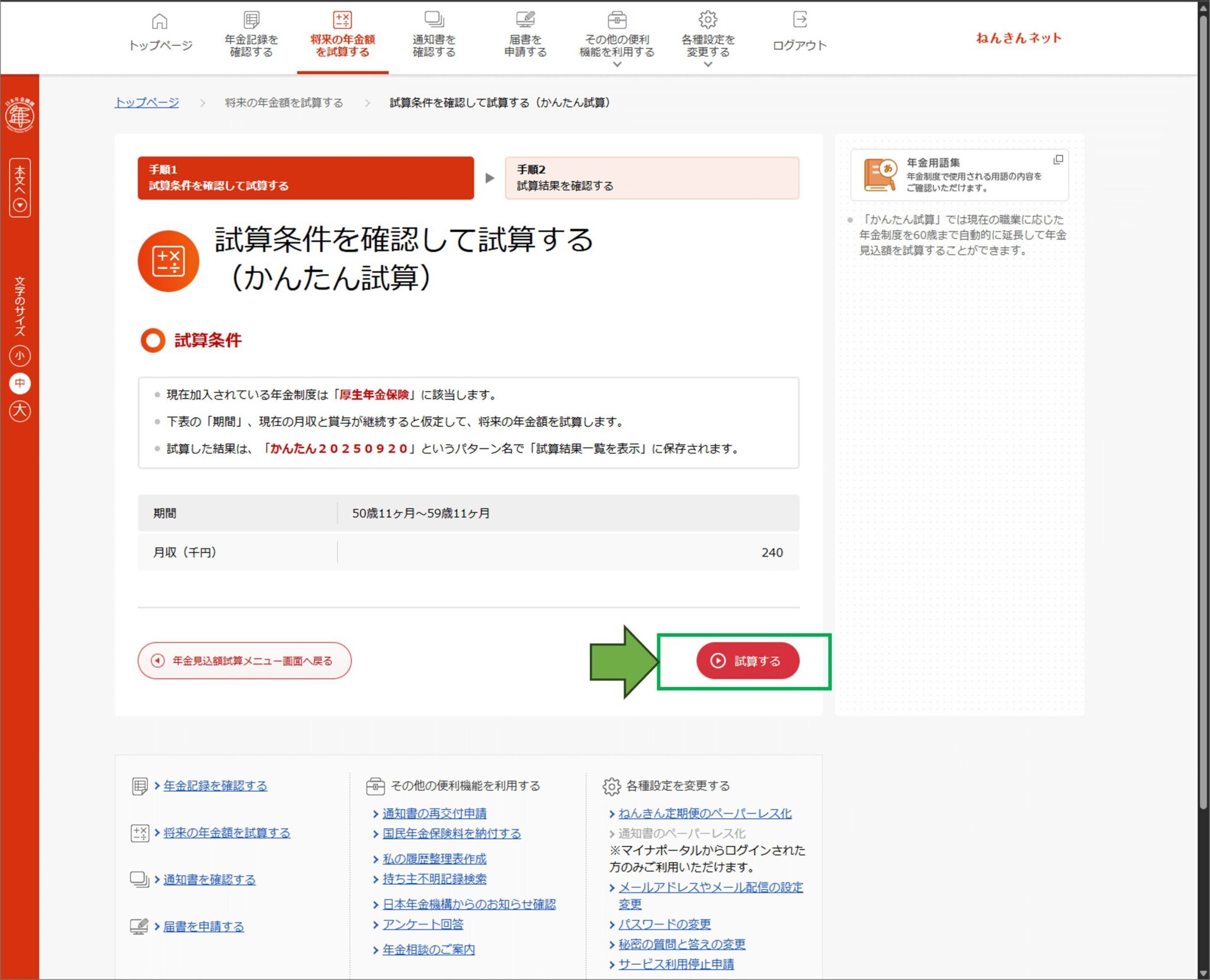 - 「将来の年金額を試算する」を選択