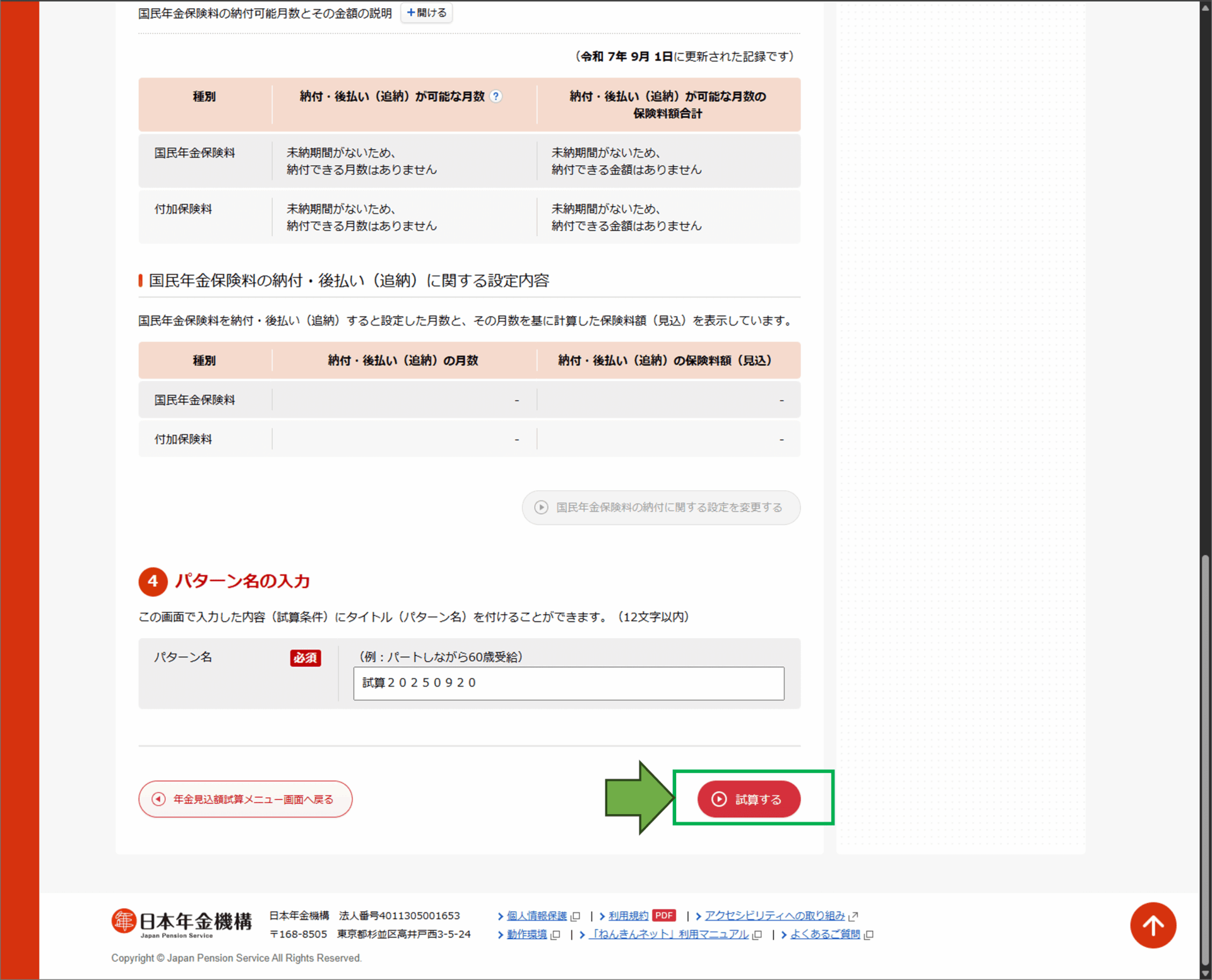 - 画面を下にスクロールし「試算する」ボタンを押下