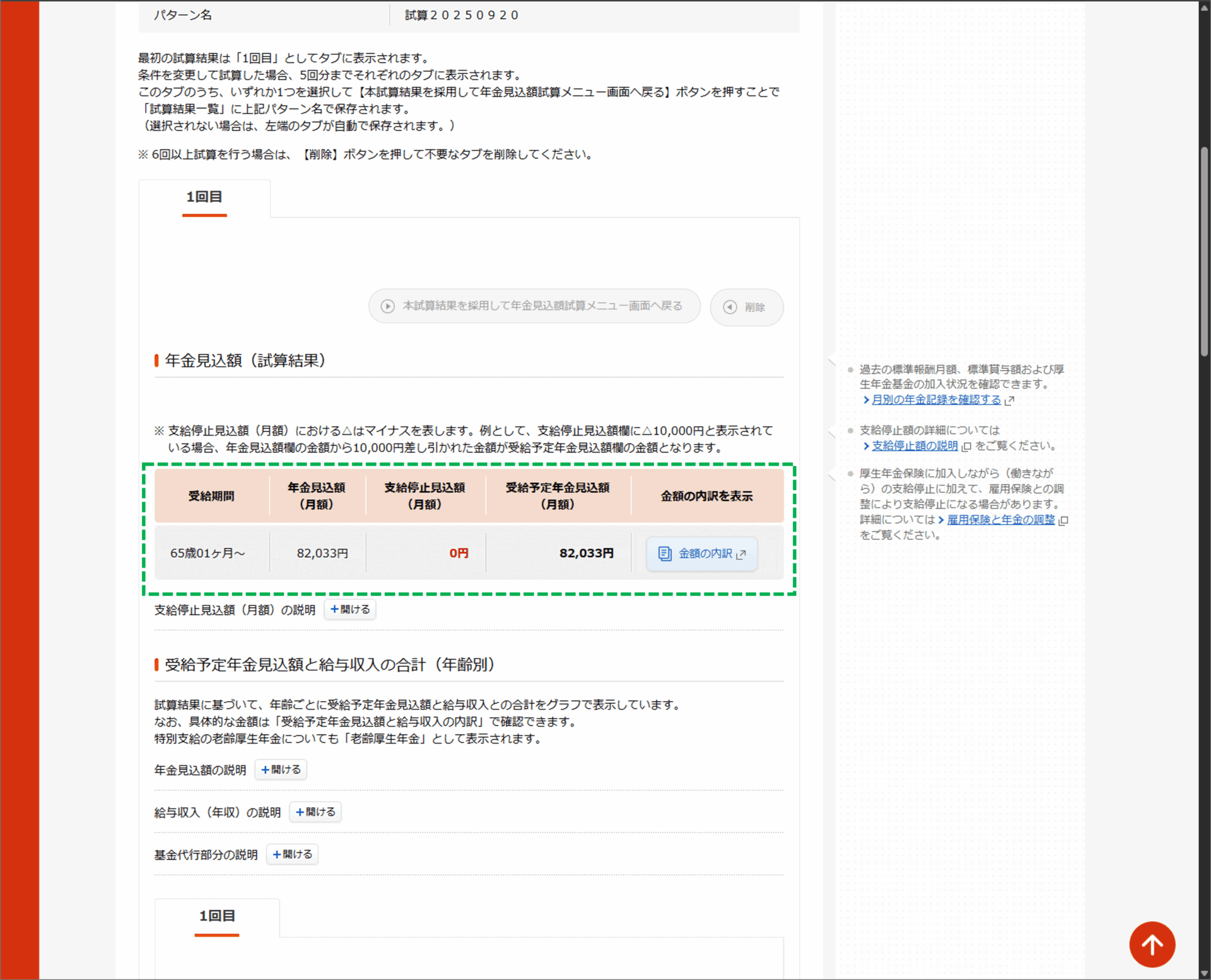 これで、もし今のまま60歳まで会社員を続けた場合の年金額が表示されます。